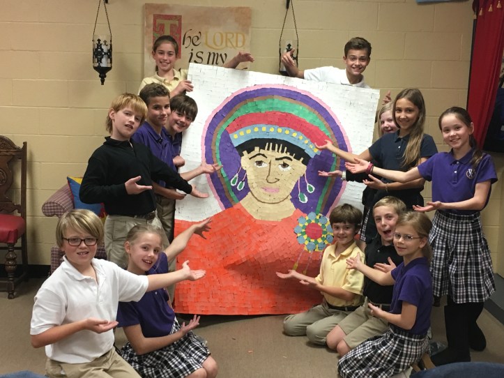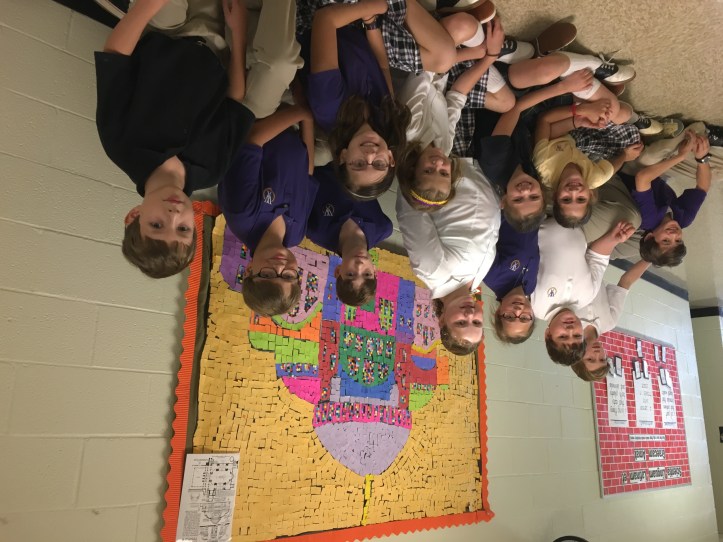 Fourth graders also study Justinian the Great and the Byzantine Empire. During these studies students design mosaics similar to those found in churches of the time period. Mrs. Culp’s class creates a mosaic of Justinian while Mrs. Wells’ class designs one of the Hagia Sophia, the church Justinian built in Constantinople.