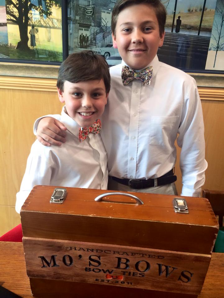 It’s no secret that the men and boys of Westminster Academy love their bowties. So, it was a “no brainer” when Mrs. Kim Dougherty, WA fifth grade teacher, asked her sons if they would be interested in being models for the Memphis based bow tie company, Mo’s Bows. Only last week, Mo’s Bows issued an advertisement on social media looking for local “graduates” for an advertising campaign. Will Dougherty, WA rising seventh grader, and his youngest brother, George Dougherty, WA rising third grader, responded to the city wide search for models. The next day, both brothers received an email that they were chosen to represent Westminster Academy in a photo shoot for Mo’s Bows. The Dougherty brothers had a great time meeting the fourteen year old CEO, Moziah Bridges.