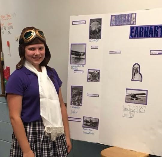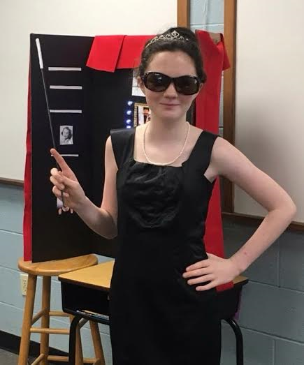 Mrs. Gibson and Mr. Read assigned biographies to their sixth grade classes before the close of the school year. The students were asked to read a biography about someone from the twentieth century. The sixth grade students chose the biographies of past presidents, actresses, scientists, musicians, and defenders of the faith. Mrs. Gibson and Mr. Read asked the students to dress as their subjects on the day of the report. All of the sixth graders gladly complied and were very accurate in their dress (and accents!).