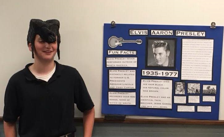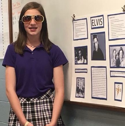 The sixth graders’ biography subjects were all very diverse from a variety of backgrounds and professions. Lainey Turner chose to report on one of her favorite people, the late puppeteer, Jim Henson. Graham Hayes decided that author, Rudyard Kipling, was a very interesting author from India. Hayes reported that Kipling did not know how to read until he was fourteen years old! Will Dougherty chose Teddy Roosevelt and named him “our nation’s manliest U.S. President.” Dougherty dressed as Roosevelt and reported that “Roosevelt survived an assassination attempt and insisted on giving a ninety minute speech with a bullet lodged in his chest.” Marianna Jordan and Sullivan Baker, both reported on the King of Rock and Roll, Elvis Presley. Jordan and Baker both sported the “Elvis sideburns” and signature gold sunglasses as they reported about the life and times of our most famous Memphis native. This is one assignment that all sixth graders look forward to all year. Thank you to Mr. Read and Mrs. Gibson for making sixth grade so much fun!