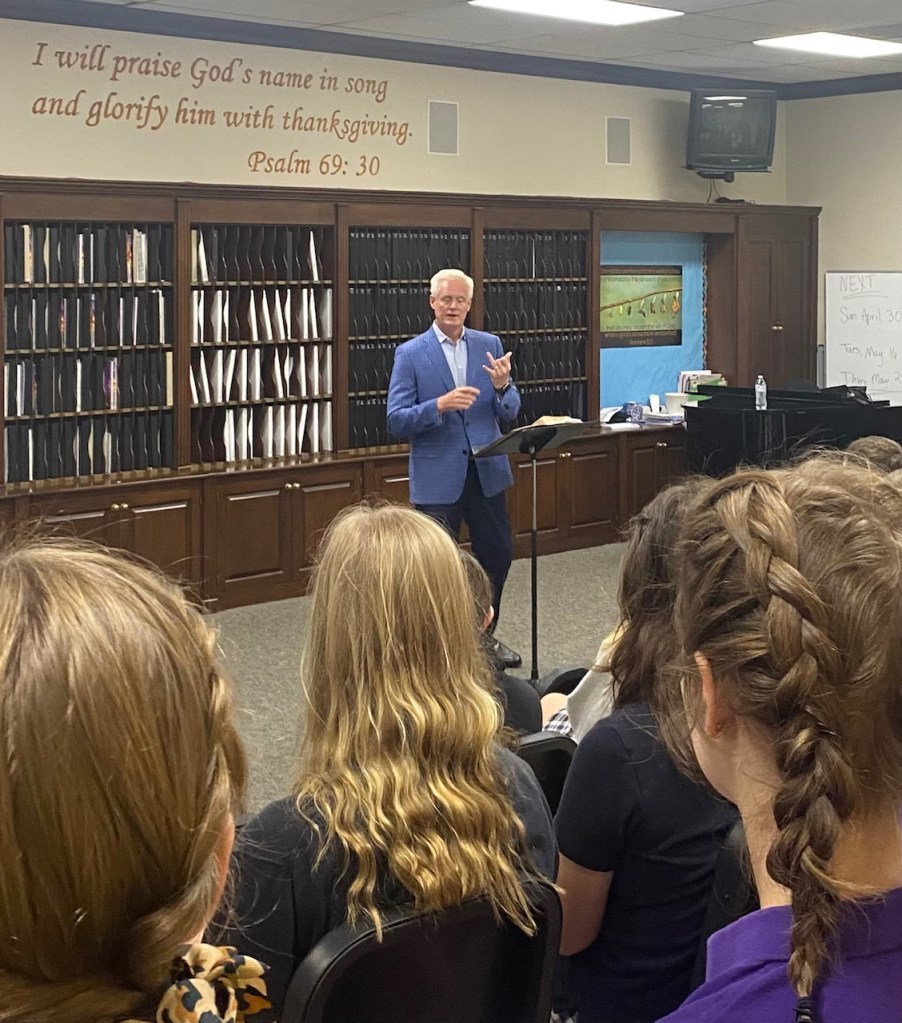Practically, that means students (and all of us, truly) need to consult the Bible and then, as Mr. Jones charged the students, “be bold enough and courageous enough to do what the Word calls you to do!” He gave several examples of scripture where faithful followers are called to examine how they would choose to serve and give, be that of time, talent, or treasure.
