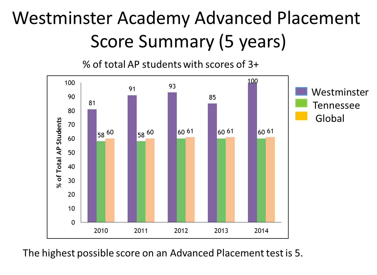 A student taking an AP course must still perform at a certain level on the AP exam to be eligible for college credit or placement. However, students do not have to complete an AP course in order to take an AP exam. Therefore, our students normally choose to take some AP tests in their senior year, earning potential college credit or the ability to skip basic-level college classes. We believe that our current use of what AP has to offer works well for our students. In 2014, 14 students took a total of 31 exams, with 100% of scoring 3 or higher on at least one test.